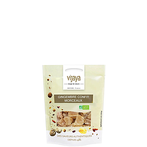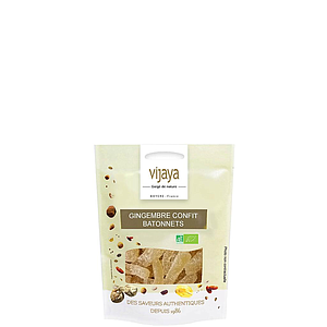VIJAYA vous propose une gamme complète de gingembre confit équitable certifié par FairTSA : brisures, bâtonnets (avec ou sans enrobage de sucre) et morceaux. Laissez-vous tenter également par notre nouveau gingembre confit au Rapadura au doux parfum de caramel...