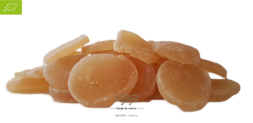 La méthode de confisage utilisée permet de préserver au mieux les qualités du gingembre.