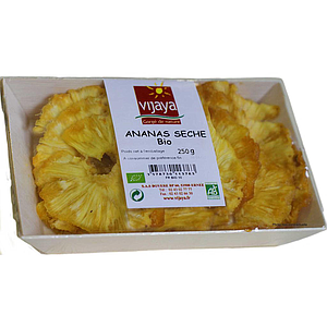 Ce faux-fruit est constitué d’une infrutescence (multitude de petites baies qui composent les «yeux» de l’ananas, agglomérées les unes aux autres), formée suite à la fusion des fleurs sur l’épi. Tendres, mœlleuses et parfumées, les rondelles d’Ananas Séché VIJAYA, origine Cameroun, conservent en toute plénitude les qualités du fruit frais.