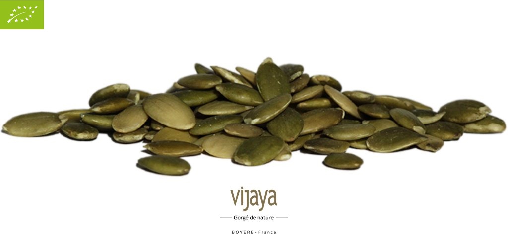 La Graine de Courge VIJAYA, origine Europe, se caractérise par une couleur vert foncée et une forme plate et ovale. Parmi cette gamme, VIJAYA propose une graine de courge française et locale.